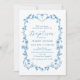 Blue Vintage Blue Floral Frame Baptism Convite
