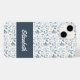 Serene watercolor botanical blue leaves pattern iPhone case featuring a customizable name, to complement your style in the yoga studio and beyond. Personalize with your name or that of a loved one.