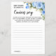 Azul floral, que sou eu Chá de fraldas cartão de jogo. Jogos das versões inglesa e espanhola incluídos (frente e verso). Transforme a mãe em Nome na modelo para as versões inglesa e espanhola. Para obter mais personalização (alterar outro texto, cor da fonte, estilo da fonte ), clique em personalizar, role para baixo e clique no link "clique para personalizar mais". Os convidados anotam uma memória pessoal que têm com a futura mãe. A Noiva lerá cada carta e se ela não se lembrar do convidado; aquele convidado ganha um prêmio!