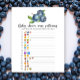 Cartão de convite para chá de fraldas em forma de grão com ilustração aquosa de mirtilos. O texto diz "um bebê doce de fruta está a caminho." Itens correspondentes disponíveis.