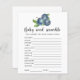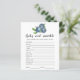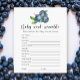 Cartão de convite para chá de fraldas em forma de grão com ilustração aquosa de mirtilos. O texto diz "um bebê doce de fruta está a caminho." Itens correspondentes disponíveis. Respostas: CRAVINGS, CRYING, PACIFIER, FRASCO, LUZ NOTURNA, LULLABY, STROLLER, EPIDURAL, BURP, ALTA CADEIRA, SACO DE FRALDA, SWADDLE