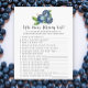 Cartão de convite para chá de fraldas em forma de grão com ilustração aquosa de mirtilos. O texto diz "um bebê doce de fruta está a caminho." Itens correspondentes disponíveis.