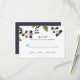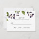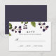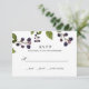 Projetada para coordenar com nossa coleção de casamento Blueberry, esta elegante placa RSVP botânica apresenta um galho de mirtilos pintados com aquarelas e folhas que superam sua data de resposta desejada e número de participantes. Cartões invertem para uma roxa sólida coordenada. Um design moderno e clássico para casamentos chic elegantes no inverno ou no outono.