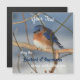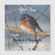 Um beija-flor bonito a vaguear sobre descansar num galho contra um pano de fundo da neve com as palavras inspiradoras Que o pássaro azul da felicidade sempre resida dentro de vocês. Personalize com seu texto. Fotografia natural de Susan.