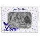 Bonito pássaro azul pousando na palavra Amor em letras elegantes num fundo de corações azuis cartão com fotos personalizado. Clique em Alterar e carregue sua foto. Substitua pelo texto ou exclua o vazio. Clique em Personalizar para ajustar sua foto e alterar a fonte, o tamanho e a cor do texto. Visite o tesouro dos olhos sorrindo para ver mais cartões e presentes de flores e natureza.