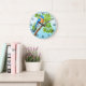 design original de arte de um pássaro azul do leste pela artista aviária Carolyn McFann do Two Purring Cats Studio num relógio de parede de alta qualidade. Excelente de presente para pássaros selvagens e fãs de pássaros!