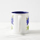 Design de caneca exclusiva com os Bluebonnets do Texas contra fundo branco e o contorno do estado do Texas com cores de bandeira. A flor de Bluebonnet é a flor do estado do Texas. Em março e abril, estas lindas flores florescem em campos e meios de comunicação nas autoestradas.