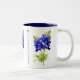 Design de caneca única com os Bluebonnets do Texas contra fundo branco. A flor de Bluebonnet é a flor do estado do Texas. Em março e abril, estas lindas flores florescem em campos e meios de comunicação nas autoestradas.