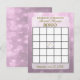 Uma atividade divertida para qualquer evento - convide convidados a jogar chá de panela bingo. Esta carta apresenta um belo fundo pincelado cor-de-rosa. Projetada por Amelia Carrie e vendida através de zazzle.com/GlitterInvitations e GlitterInvitations.com
