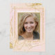 Um fundo de aquarela em tons de ouro rosa é tocado por um abstrato de linhas de ouro finas e efeitos de iluminação reluzentes para criar este belo convite de graduação. A carta também apresenta uma caligrafia elegante e um quadro de gradiente para segurar sua foto. Adicione facilmente os seus próprios detalhes de eventos pessoais utilizando o modelo fornecido. Procure ID867 para ver outras peças e opções de cores para este conjunto.