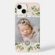capas de telefone impressas personalizadas de barato personalizadas com suas fotos e texto. Este design feminino bonito tem uma borda floral pintada em tons de branco, verde e ouro sobre fundo rosa-claro. Adicione sua própria foto personalizada e personalize-a com seu monograma inicial ou outro texto personalizado em um círculo. Use as ferramentas de design para escolher qualquer cor de fundo, editar as fontes de texto e as cores e adicionar mais fotos para criar uma foto do tipo monograma do seu dispositivo.