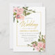 Trendy Blush Rosas cor-de-rosa e ouro deixa convite de casamento com Dourado quadro e elegante tipografia de caligrafia.