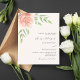 Um fundo creme, colorido bege, decorado com ouro rosa e rosa-rosa-rosa, flor e verde. Personalize e adicione seus nomes. 1 folha = 1 convite impresso de borda a borda.