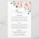 Blush Flowers, Pink Flowers, Boho, Wedding Menu