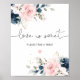 Rosas cor-de-rosa pincelados chá de panela floral "O amor é doce" Poster. Sinal de mesa do chá de panela. Itens correspondentes disponíveis.