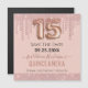 Diamantes rosa-menina, fundo rosa-milenar, com tipografia de nome de script de rico. Texto do balão rosa dourado 15. Excelente para comemorações de marmelos. Todo o texto é ajustável. festa de aniversário 15 Salve os ímãs de manutenção de data