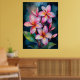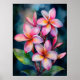 Uma plumeria bonita e exótica é vista num adorável arranjo de flores tropicais. Esta obra digital de arte foi inspirada pelos meus jardins tropicais na ilha de Maui. Foi criada com uma série de técnicas de aquarela e pincel seco.