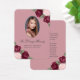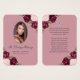 Cartão de memória floral vermelho e cor-de-água e rosa/cartão de oração funerária com uma foto adornada com rosas vermelhas cor-de-rosa e arrojadas e hálito de bebê em fundo rosa.