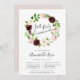 Os convites florais sagrados de primeira comunhão apresentam uma coroa de flores de aquarela em rosa-pincel, marsala-burgundy e marfim com folhas e folhagem botânica verde-luxuosa, cercando a "primeira comunhão sagrada" em letra chic manuscrita. Personalize com sua cerimônia religiosa e comemoração ou detalhes do partido abaixo. Concebido para corresponder à nossa coleção de artigos de papelaria para eventos Blush Romance.