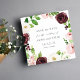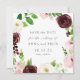 Nosso Blush Romance guarde o cartão de data armado seus principais detalhes de casamento, incluindo data e local, dentro a exuberante fronteira floral de rosas e peonias em rosa-claro e burgundy marsala com folhas e folhagem verdes vibrantes. Personalize com seus nomes, data do casamento e local usando os campos fornecidos.