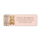 Adicione o toque final mais doce aos seus convites de chá de bebê e cartões de agradecimento com o rótulo de endereço de devolução We Can Bearly Wait Girl Baby Shower da Porch & Gable Design. Este rótulo encantador apresenta o ursinho de pelúcia signature da coleção, segurando um balão rosa, combinado com um fundo rosa suave sobre xadrez gingham marrom-chocolate em aquarela. O design inclui texto totalmente personalizável para o seu nome e endereço de devolução, tornando-o tão funcional quanto adorável.