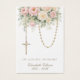 A tender remembrance rendered in soft blush roses and creamy florals, gently adorned with a draped gold rosary. This traditional Catholic design offers a peaceful and reverent setting for honoring a beloved soul. The delicate watercolor florals and graceful rosary create a sense of quiet devotion, inviting prayer for the faithful departed.