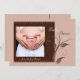 Neste convite contemporâneo, sua foto de maternidade aparece em um design esmaecido e marrom, pontilhado na borda de cima e de baixo. Um galho foliar sábia cresce à direita.