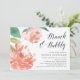 O convite para o brunch de chá de panela chic apresenta ilustrações em cor d'água de uma flor de pénica em cor d'água, em cor rosa pincelado, acentuado com folhas verdes e peludas. Personalize com seus detalhes de brunch bridal alinhados à direita, com "brunch & bubble" em um roteiro elegante de caligrafia. Cartões inverter para um sutil fundo de lavagem com aquarela sutil.