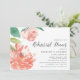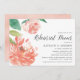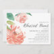 O convite para janto de ensaio floral elegante inclui folhas verdes e flores de pénia aquosa, cor-de-rosa-pincel e pêssego. Personalize com seu ensaio de cerimônia e ensaie os detalhes do janto alinhados à direita.