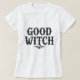 A T-Shirt do Dia das Bruxas Boas Negras e Brancas celebra o Dia das Bruxas em estilo com esta camisa personalizada de tipografia da "Boa Bruxa", que pode ser personalizada com a sua escolha de Texto de Boa, Má ou Outra Bruxa. Apresenta um design de acento de rolagem preto.