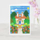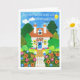 Um cartão "Boa Sorte com a Sua Movimentação" com uma saudação francesa e uma cabana bonito de uma colagem de papel pintada à mão por Judy Adamson. O dentro é o vazio deixado para a sua própria mensagem e a saudação frontal pode ser alterada contatando-me através da minha loja.
