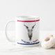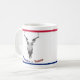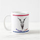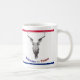 Crânio da vaca com as pistolas como chifres. Lê no fundo a "boa vinda a Texas" no vermelho, no branco e no azul. Personalize a caneca ao estilo de sua escolha.