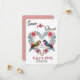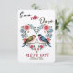 Este design é um belo cartão "Salvar a Data" com uma estética romântica e vintage. Ele apresenta dois pássaros de cor pastel tocados em anéis de casamento, simbolizando união e amor. No centro da composição está uma coroa de flores e bagas, criadas em tons rosa quente e azuis. O fundo tem uma textura de papel kraft, acrescentando uma sensação natural e confortável. Esta é uma escolha perfeita para um tema de casamento rústico ou inspirado na natureza.