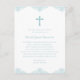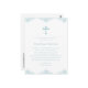 Este cartão postal de convite para batismo de meninos azuis e brancos apresenta uma cruz azul pastel e um design azul decorativo no topo e no fundo. O texto azul pode ser alterado para se adequar a uma Primeira Comunhão ou a uma confirmação. Adicione seu endereço de retorno à parte traseira e qualquer texto adicional, se desejar.