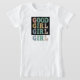 Design de camiseta "Boa Menina": Esta camiseta apresenta o texto "boa menina" com um toque lúdico. Cada letra tem uma cor vibrante diferente, criando um aspecto divertido e enérgico. O design geral é ousado e casual, perfeito para alguém que adota um estilo leve e descuidado.