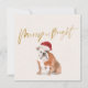 Um cartão de boas-vindas de Natal ou Feriado com um cão-Touro num Pai Natal que facilmente muda a informação para o teu. Saudações sazonais divertidas e brilhantes.