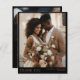 Um design de cartões de agradecimentos único, moderno e barato, com texto fino em ouro falso sobre fundo preto. O layout mostra uma grande foto de retrato na frente e uma foto paisagem no verso, criando um eterno e um visual sofisticado. O verso também inclui espaço para a sua mensagem pessoal, fazer que seja fácil compartilhar sua gratidão em estilo. Perfeito por agradecer convidados de casamento e preservar memórias do seu dia especial.