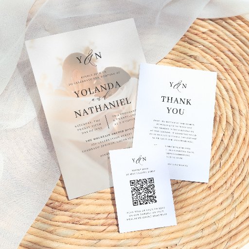 Este simples, elegante e moderno convite de casamento fotográfico apresenta as iniciais do casal em letras maiúsculas em negrito no topo da página. Há uma imagem de caligrafia entre eles. Abaixo, o texto do convite diz "gentilmente junte-se a nós para celebrar o casamento de" com os nomes dos casais na tipografia da serifa cônica. Em seguida, há um divisor de linha vertical que separa o dia e a data do ano e da hora. Fizemos com que estas linhas se mantivessem o máximo possível até ao cobrir de três linhas para uma aparência mais na moda. Considere adicionar "o XX dia de" e "dois mil e XX" em vez de uma data escrita mais curta e padrão. A isto segue-se o local e o endereço do casamento, com a informação de recepção no fundo. Por trás da tipografia, há uma camada branca semitransparente cobrindo a foto de sua escolha. Escolhemos uma foto de modelo no lado da luz para realmente fazer o texto pop! Estas cartas mudam para outra foto diferente da sua escolha. Claro que pode mudar tudo isso para atender às suas necessidades! Por exemplo, se você só quisesse mostrar uma foto, você poderia excluir a foto de trás e adicionar uma de suas cores de casamento, ou poderia excluir a foto da frente para ter um tema minimalista de tipografia preto e branco. Você pode optar por alterar a fonte, a pontuação ou a cor usada para os elementos de texto deste design ou adicionar um filtro às fotos que você carrega, simplesmente clique em "Personalizar" e, em seguida, em "editar usando a ferramenta design" para ter acesso a personalização mais avançada! Por favor, observe que a "e" são imagens que não podem ser editadas na plataforma Zazzle, se você quiser mudar isso, deixe-me uma mensagem através do botão abaixo! Em qualquer caso, lembre-se de mudar ou excluir todo o nosso texto de amostra, assim como nossas fotos de modelo. Esperamos que você goste de personalizar esta design minimalista para criar seus próprios convites de casamento. Como parte da seleção orçamentária no Zazzle, esta folha não é um tamanho de convite padrão ou qualidade de papel. Se quiser que este design num cartão de convite o encontre na nossa loja ou utilize o Zazzle Make Machine para o transferir para o produto da sua escolha. Temos outros designs semelhantes na nossa loja, por isso, por favor, deem uma olhada se você quiser procurar mais convites!