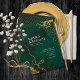 Um fundo de aquarela em tons de verde esmeralda é tocado por um abstrato de linhas de ouro finas e efeitos de iluminação reluzentes para criar as peças desta bela suíte de casamento. O cartão "Convite" do casamento mostrado aqui também contém texto não centralizado; e uma fina borda de malha em ouro no sentido inverso. Adicione facilmente seus próprios nomes, data do casamento e detalhes do evento usando o modelo fornecido. Procure ID867 para ver outras peças e opções de cores para este conjunto.