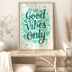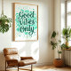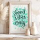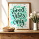 Radiar positividade com esta vibrante impressão de arte "Só boas vibrações". Apresentando uma tipografia ousada e escrita à mão em tons calmantes, realçada com pinceladas e estrelos, esta peça é um lembrete alegre para abraçar o otimismo e atrair boa energia. Perfeito para adicionar uma pop de cor e uma dose de felicidade à sua sala de estar, ao seu quarto ou ao seu espaço de escritório.