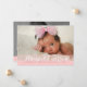 Completamente moderna e simplesmente elegante, esta design é uma maneira perfeita de apresentar sua doce menina. Apresenta uma bela tipografia cursiva e duas grandes fotos do seu bebê - uma na frente e outra nas costas. A frente também guarda a informação de nascimento do bebê, e no verso uma área de texto especial para ser personalizada com pais e informações da família.