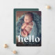 Um design de anúncio de nascimento doce e elegante que apresenta um cheio sangrando fotos horizontais ou paisagísticas com "boas-vindas" sobrepostas em letras retrorreflectoras ao longo do fundo. O nome do seu bebê e as estatísticas de natalidade aparecem em branco. Adicione uma foto adicional ao verso, juntamente com uma mensagem pessoal.