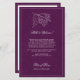 Elegante, sofisticado e moderno. A chave desta design é o seu elaborado papel personalizado, a simples tipografia elegante, e delicado contorno de folhas e bagas. Fundo roxo de ameixa, com textura intrincada e um elegante padrão amoroso. Cores clássicas do eterno complementar: roxo e branco de ameixa. Ideal para o casamento outono, mas também para qualquer tipo de casamento elegante moderno.
