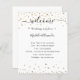 Fundo branco elegante, decorado com corações ouros, aspersor. Personalize e adicione seus nomes e sua linha do dia do casamento.