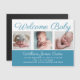 Bem-vindo, bebê. Um ímã de anúncio de nascimento de um bebê clássico em azul-cerulano com uma bela tipografia cursiva acima da sua doce colagem de fotografias recém-nascidas. Um cartão magnético de imagem criança adorável.