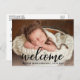 Cartão-Postal Moderno de Anúncio do Novo Bebê - Script Preto