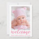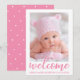 Boas-vindas - Novo Cartão de Script Rosa de Anúncio Moderno do Bebê - Pontos Rosa Voltado