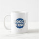 Bocce King, caneca de café engraçada para o jogador Bocci. Legal xícara com o logotipo da bola de bloco azul e citação humorística. Personalize com seu próprio texto e cores.