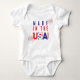 Adorável design apresenta as palavras "Made in the USA!" em letras vermelhas, brancas e azuis. As imagens dos fogos de artifício são apresentadas nos cantos superior direito e inferior esquerdo.