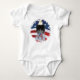 A águia americana foi colocada em frente às estrelas e faixas da bandeira americana com texto dos EUA.